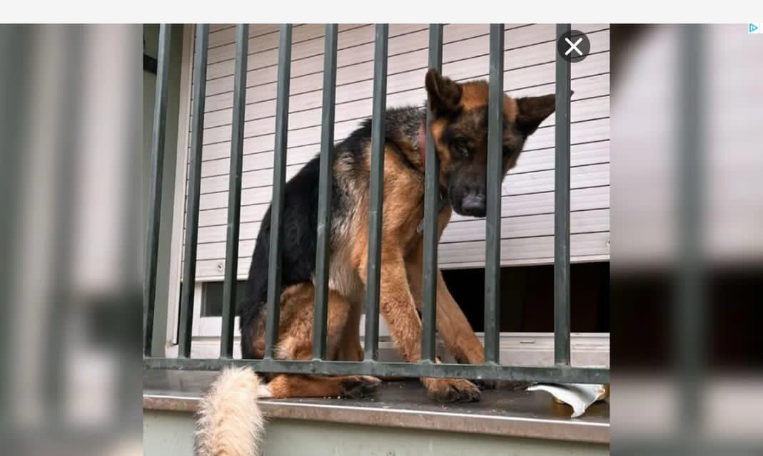 Tarzán, un pastor alemany deixat a l'ampit d'una finestra durant hores.