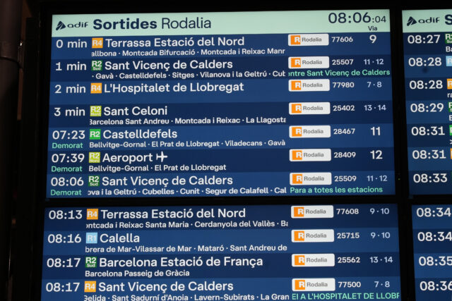 ACN Barcelona – La forta ventada de dijous a Catalunya impacta en la mobilitat. A l’aeroport del Prat ja s’ha anunciat la cancel·lació d’almenys 101 vols, entre sortides i arribades, segons ha informat Aena. A més, l’aeroport ha hagut de desviar 10 vols, la majoria dels quals a Madrid. A Rodalies la caiguda d’arbres, plaques solars o plàstics de grans dimensions han provocat afectacions al llarg del matí que han impactat en el servei de línies com l’R11, l’R1, l’R2sud o l’R4. A més, el mal temps ha obligat a tancar les estacions de l’R1 de Premià de Mar i Malgrat de Mar, així com la de Barberà del Vallès de l’R4. En concret, s’ha hagut d’interrompre l’R11 entre Girona i Maçanet-Massanes per la caiguda d’un arbre a Caldes de Malavella.
