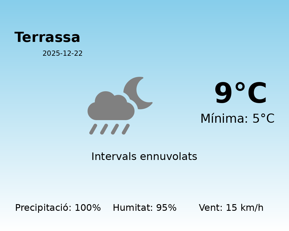 Benvolguts habitants de Terrassa, la jornada d’avui es presenta amb condicions meteorològiques que requereixen una atenció especial. A continuació, us detallo la predicció del temps per avui.