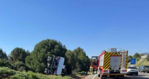 Un camió bolca a la C-58c i provoca moments de tensió...